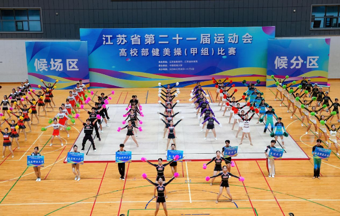 据悉,省运会四年一届,是江苏省规格最高、规模最大的体育盛会。本次比赛为期3天,共32所本科高校近600名领队、教练员、运动员参加,分为男女单人操、混合双人操、三人操、五人操、花球和技巧啦啦操七个项目。(王宇恒 陈安婕)