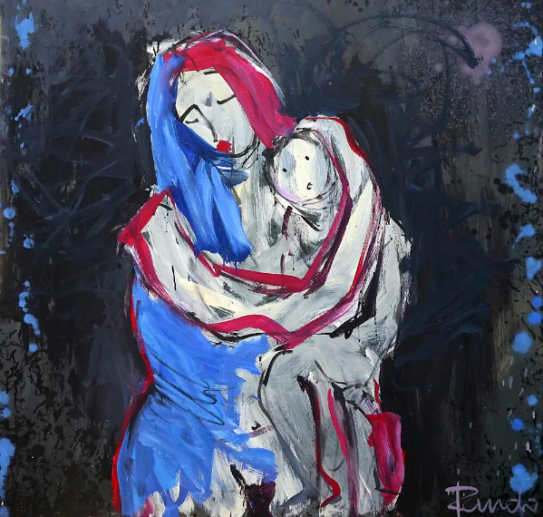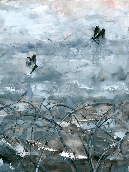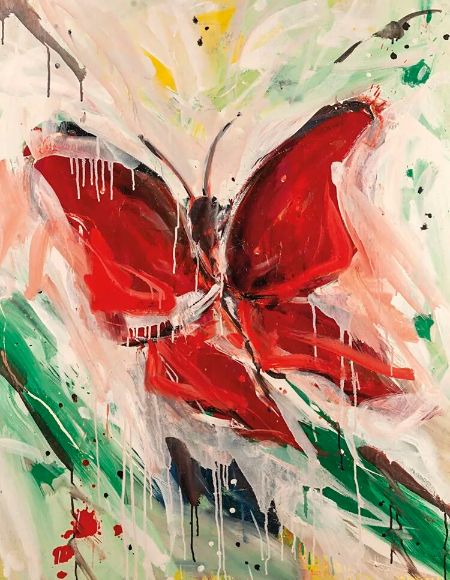 乔治·兰多通过对日常生活的描绘,表现了爱、悲悯、尊严、身份认同,以及对人与自然和谐关系的呼唤。《母亲》系列以粗犷而深情的笔触,描绘母爱的力量,其中多幅作品展现了母亲怀抱婴儿的瞬间,笔触间带着坚韧与温柔;《蝴蝶》系列既富有东方哲思,又保持了西方表现主义的张力……