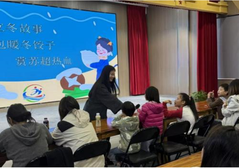 活动伊始,泰州市新时代文明实践基地的志愿者为孩子们讲述绘本《立冬里的饺子》,将立冬节气习俗娓娓道来。期间穿插的趣味问答引发小朋友踊跃举手互动,现场气氛热烈欢快。孩子们在轻松氛围中不仅知晓了立冬吃饺子的寓意,还学到了冬季保暖、增强抵抗力的小知识。