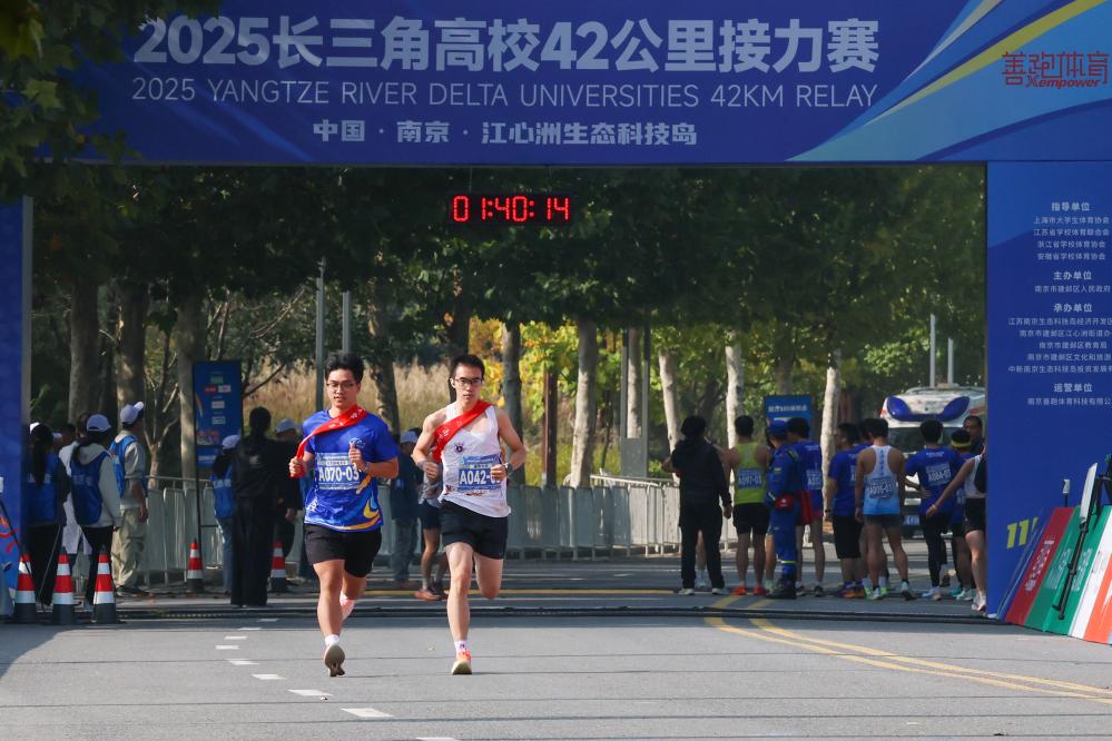 11月2日,2025长三角高校42公里接力赛在南京建邺区江心洲鸣枪起跑,来自长三角地区三省一市的100余所高校、近200支代表队参赛。
