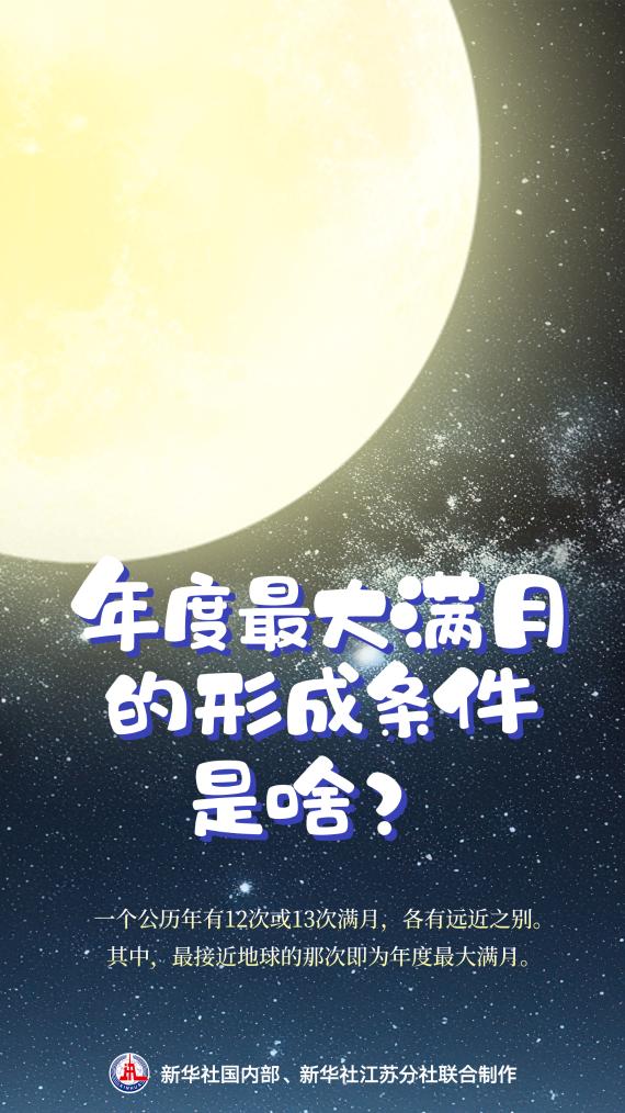 中国科学院紫金山天文台科普主管王科超说,年度最大满月是每年几次“超级月亮”中最接近地球的一次。什么是“超级月亮”?简单来说,“超级月亮”需满足两个基本条件:圆和近。