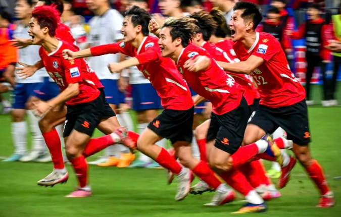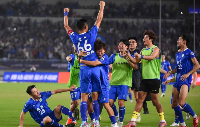 10月19日,南通VS无锡,曹政 摄。“苏超”半决赛,南通队4:2战胜无锡队赢得点球大战,顺利晋级决赛。赛后南通队欢呼胜利。