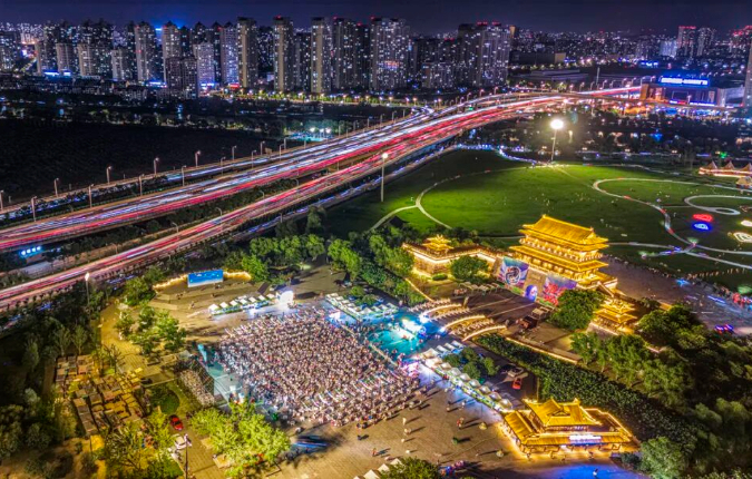 7月20日,无锡VS淮安。徐昌政 摄。淮安漕运门“苏超”第二观赛现场。