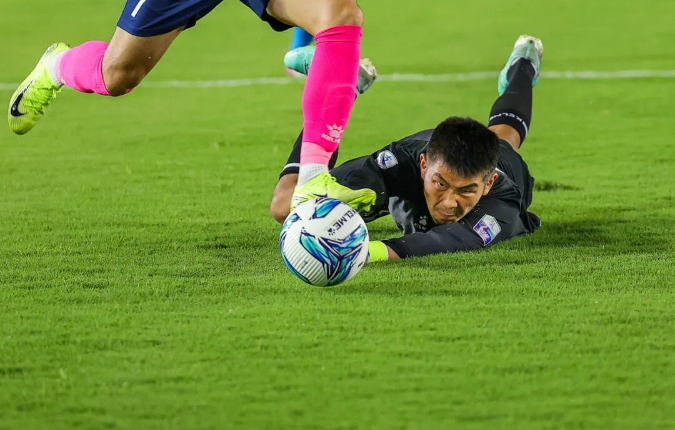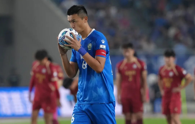 10月4日,南京VS连云港,李博 摄。“苏超”四分之一决赛中,南京队球员戈伟亲吻足球,准备点球。当日,南京队主场通过点球5:3战胜连云港队,晋级半决赛。