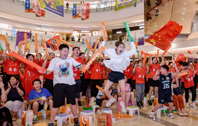 9月7日,苏州VS盐城,曹永祥 摄。盐城东台“苏超”观赛第二现场,球迷会成员在东台德润广场为盐城队加油助威。
