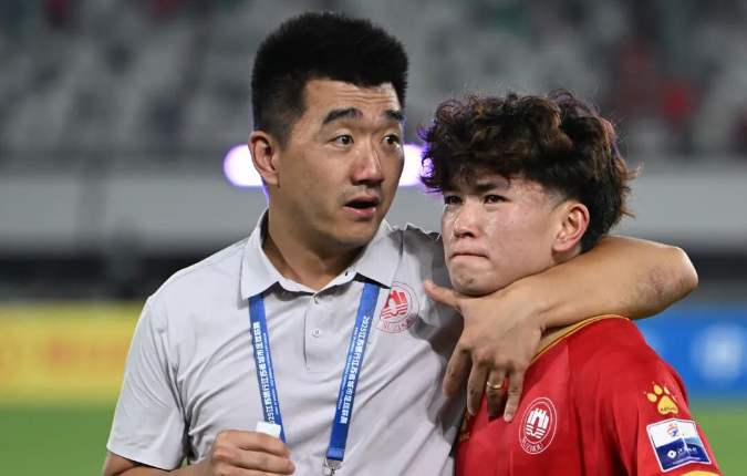 9月7日,苏州VS盐城,王须中 摄。苏州队2:3惜败盐城,苏州队教练韩旭比赛后与球员寇程交流。
