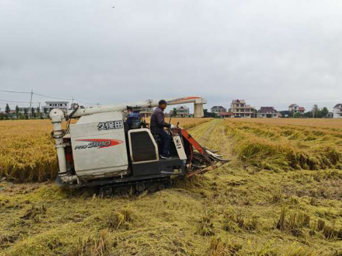 育民村现有耕地6200亩,其中已有94.5%完成高标准农田建设。朱将林介绍:“我们在2018年成立了育民合作农场,目前除了300亩土地,其余都已流转给村里的大户了。今年水稻亩产大概1000到1200斤,小户基本收完了,大户半个月之内也将全部收割完成。”