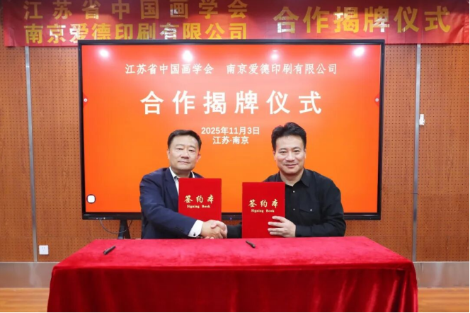 仪式最后,翟优与刘磊共同为“中外文化艺术交流基地”揭牌,并签署合作协议。双方均表示,将以此次合作为新起点,让江南水墨的灵秀、中国画的气韵突破地域与语言界限,同时为爱德印刷的文化传播版图注入东方艺术底蕴,让每一份印品都成为有温度、有内涵的“文化使者”。