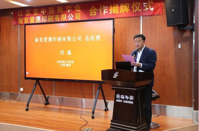 仪式现场,刘磊在致辞时表示,南京爱德印刷始终秉持“传播文化、促进交流”的社会责任,此次与江苏省中国画学会合作,是“艺术”与“匠心”的美丽邂逅,更是传统文化与现代产业融合的有益尝试。“中国画是讲好中国故事的绝佳载体,爱德将以精密印刷技术与国际传播渠道为支撑,让东方艺术之美走向更广阔的世界舞台。”他说,让・高立昂院士的到来为基地注入国际视野,契合“搭建中外文化艺术之桥”的初衷。