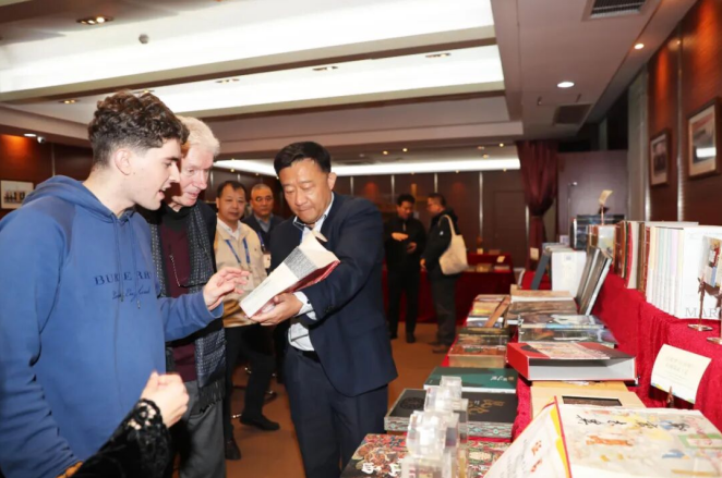 揭牌仪式开始前,南京爱德印刷有限公司总经理刘磊带领团队与法兰西艺术院通讯院士让・高立昂展开介绍交流,共话文化传播新路径,为本次文化合作奠定前期共识。