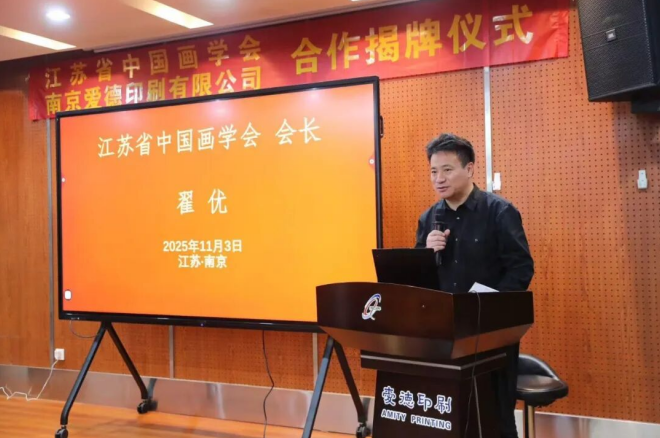 千年文脉与匠心印刷“牵手”,搭建国际文化桥梁。据翟优会长介绍,新揭牌的中外文化艺术交流基地将以“文明互鉴”为核心理念,围绕三大方向推进合作:一是打造国际文化交流品牌,每年主办“中外艺术家春节送福拜年活动”,并推进“以艺通心”系列项目——先启动中美艺术交流,逐步拓展至法国、意大利等欧洲国家,让书画艺术成为中外情感共鸣的纽带;二是实现资源精准赋能,江苏省中国画学会将为“爱德美术馆”提供学术定位、展品筛选、主题策展等支持,南京爱德印刷则为学会及艺术家提供全流程优质画册印制服务,推动艺术价值与专业服务深度融合;三是建立灵活合作机制,针对具体项目细化执行方案、明确责任分工,确保合作落地见效、成果丰硕。