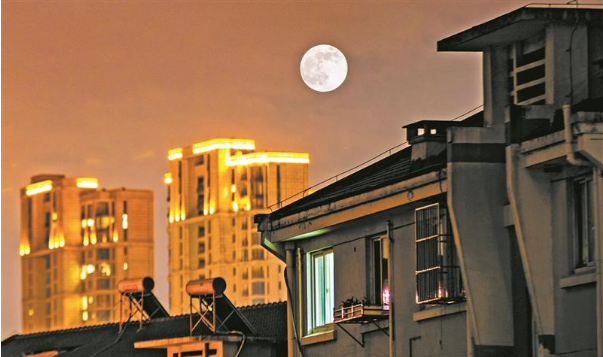 图为当晚月亮映锡城。 (宗晓东 摄)