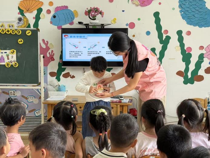 镇妇联以“双护课堂”为抓手,将法律知识、自护技巧融入趣味活动,让孩子们在“学中懂、懂中用”,提升自我保护能力。在钓鱼中心校,学生们集中观看自我保护教学视频。视频课后的“情景问答”互动环节,大家踊跃抢答。孩子们表示:以前不知道这些情形是危险的,现在知道要保护自己了!在海河幼儿园,孩子们围在志愿者身边,认真听“爱牙护牙,‘齿’久健康”主题课。志愿者手持牙齿模型,用“小虫子蛀牙齿”的生动比喻,告诉孩子们“少吃糖、勤刷牙”的重要性。