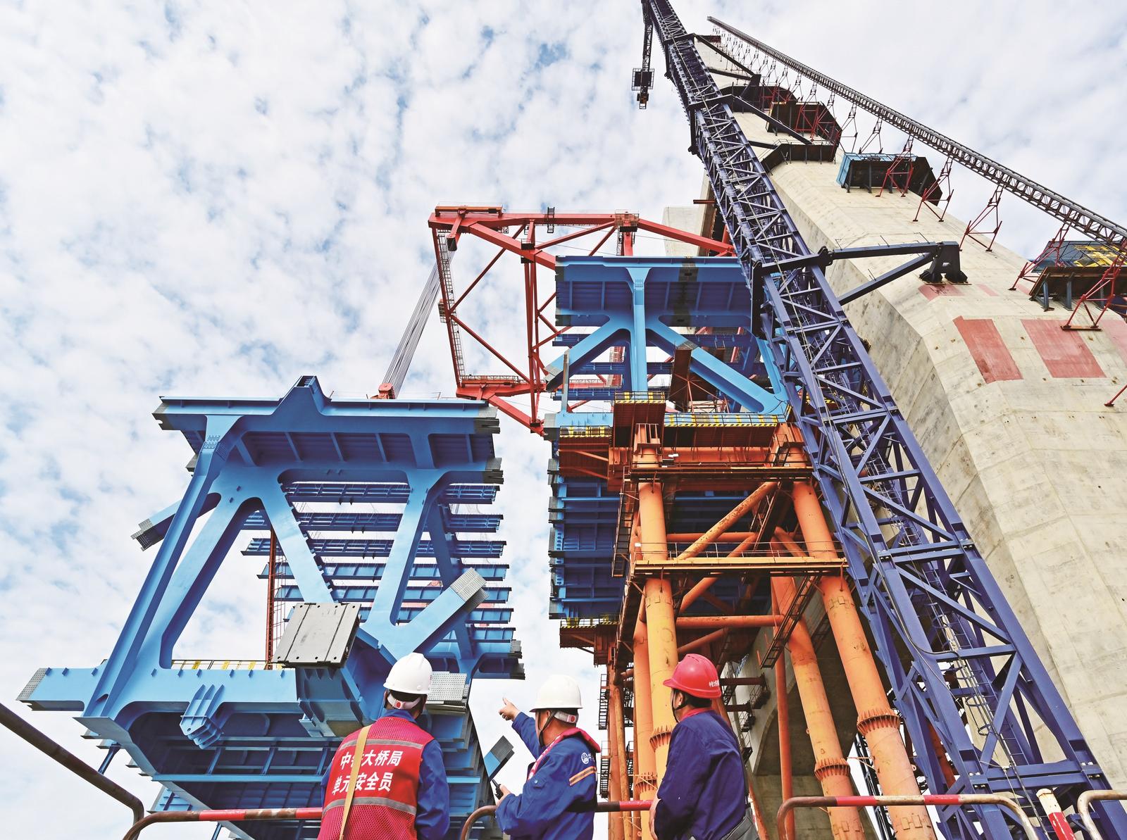 昨天,崇启公铁长江大桥施工现场钢塔林立,多种吊装设备运行有序,大桥建设进入冲刺阶段。据介绍,截至目前,多个重点工段已取得突破性进展。其中,北引桥高铁侧现浇梁全部浇筑完成,城际侧现浇梁浇筑19孔,完成设计总量的90%。(丁传彬)