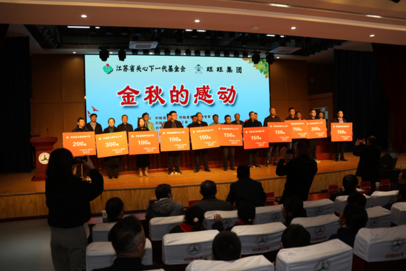11月6日,江苏省关心下一代基金会联合旺旺集团南京大旺食品有限公司分公司来到苏北革命老区盱眙县黄花塘镇开展“金秋感动”关爱中小学生活动。江苏省关心下一代基金会理事长徐国林、南京大旺食品有限公司分公司区域总监潘御林等相关人员及师生代表共200多人参加了活动。