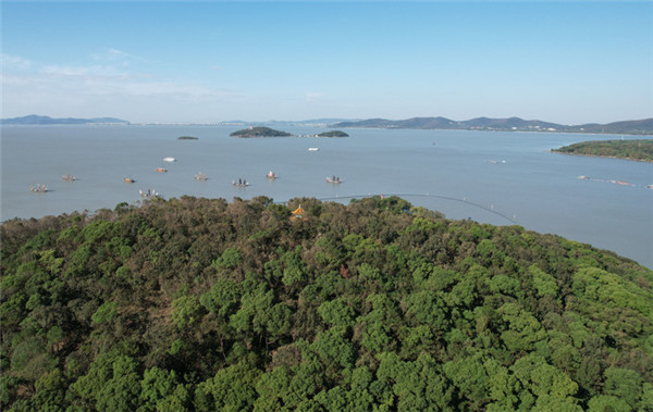 无锡太湖鼋头渚景区风光(无人机照片)。 新华社发(还月亮 摄)