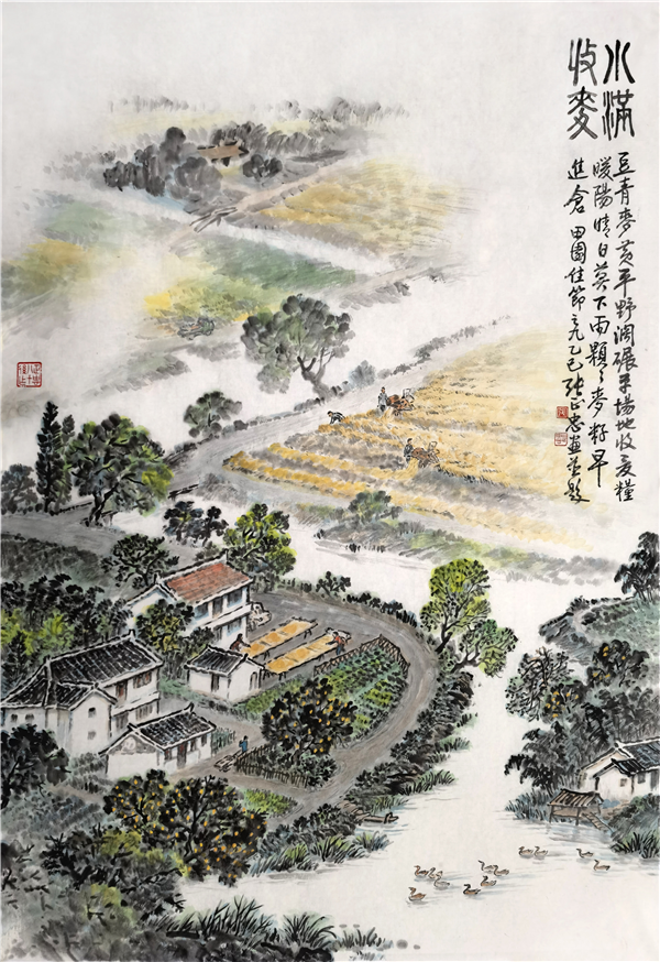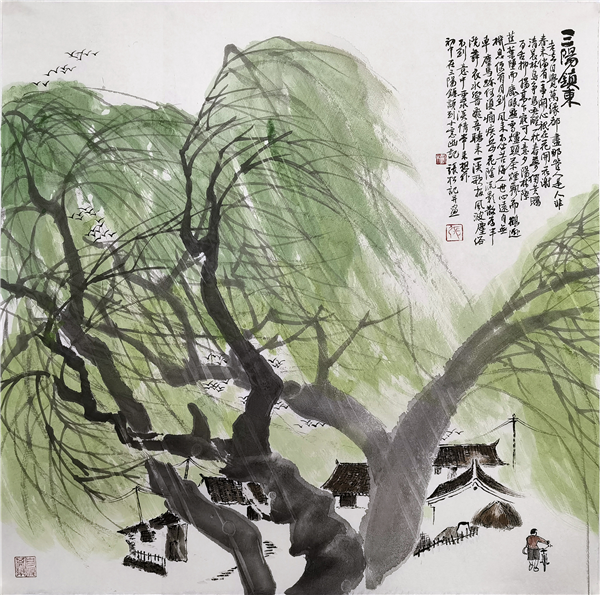 本届画展热情讴歌家乡的田园生态之美,抒发爱国爱家乡的情怀,诸位画家在继承中创新,发挥个人的特点,画江海大地的乡村庭院、长三角广袤的田野。例如张正忠的《惊蛰飞燕图》表现田园生活的诗意栖居;周建明的《田园叠翠》画出了山村田园真景;施石希的《河畔春烟》画出了村居的安宁;还有章伟雄、郭素萍的《小村喜事多》,胡玉英的《春意盎然农耕忙》,孟柏炎的《山村佳色》,张松的《秋声》,杜建红的《乡野幽居》,陈旦的《夏芦水韵》, 黄凯的《归舟入浦》,徐忠的《稻香秋色》,赵万泉的《风和日丽》等等,从不同角度画出了生态田园之美。画展作品有回忆,有现实,有理想,无不表现了热爱家园、热爱大自然之美与振兴乡村的愿望。(美琪)