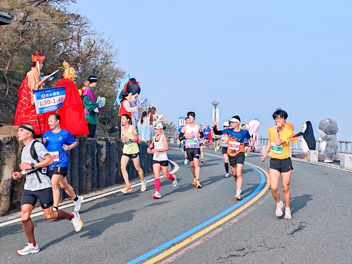 除了极具吸引力的赛道,赛事配套福利同样诚意满满。11月7日至10日,海上云台山、花果山等知名景区面向所有参赛选手免费开放,让参赛者在竞技之余深度领略港城风光。赛道沿途精心布置了龙腾海跃舞龙舞狮助威团、海上摩托艇、跑车艇、快艇组成专属助威梯队、流动的户外音乐会等12个特色助威站点,为选手全程注入奔跑动能。终点嘉年华区域设有54个摊位,涵盖非遗、文创、娱乐、特色小吃、茶饮、甜品等多元业态,极大满足了参赛选手沉浸式参赛的需求。