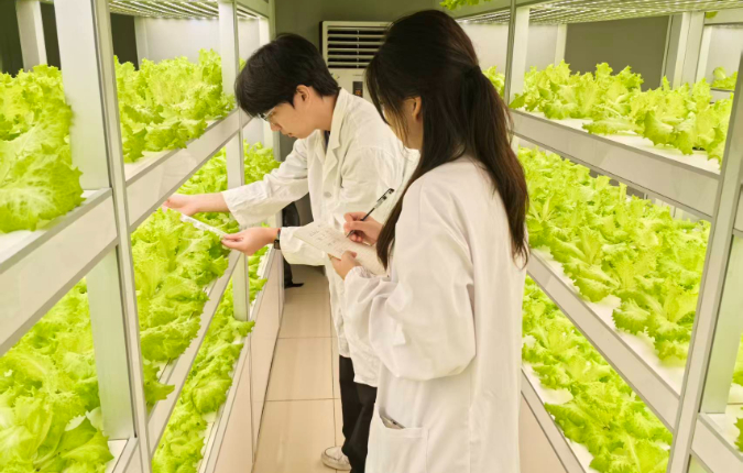在相城校区的智能化数字植物工厂里,生菜在无土栽培系统中享受智能环境控制技术的“精准呵护”。这里既是教学基地,也是绿色农业技术的“试验田”。园艺科技学院教授陈素娟介绍,智能数字植物工厂是一座集科研、教学与生产于一体的现代化农业设施空间,有现代化的玻璃温室1万平方米,植物工厂采用先进的无土栽培技术,配备智能化环境控制系统,致力于推动高效、绿色、可持续的农业生产模式。