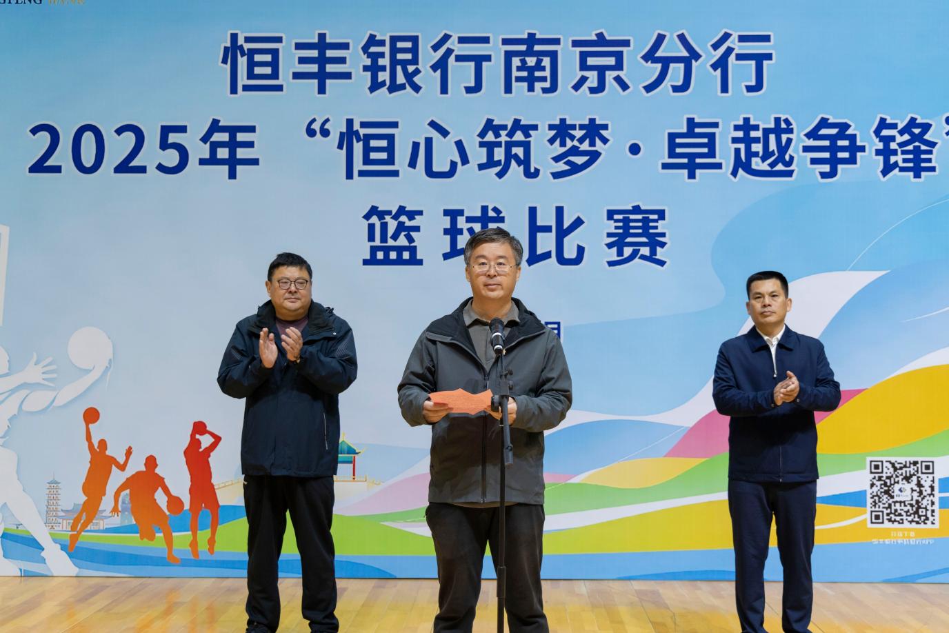 11月8日,恒丰银行南京分行在扬州成功举办2025年“恒心筑梦 卓越争锋”职工篮球比赛。扬州市总工会党组成员、副主席韩士军,南京分行党委委员、副行长、工会主席张光耀出席活动。