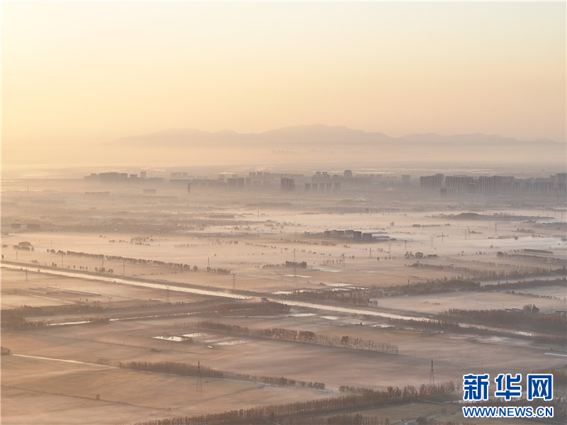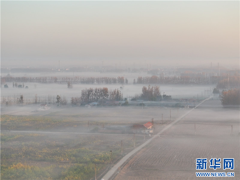 11月12日,连云港市赣榆区出现平流雾景观,晨雾笼罩着村庄,如梦如幻。(司伟)