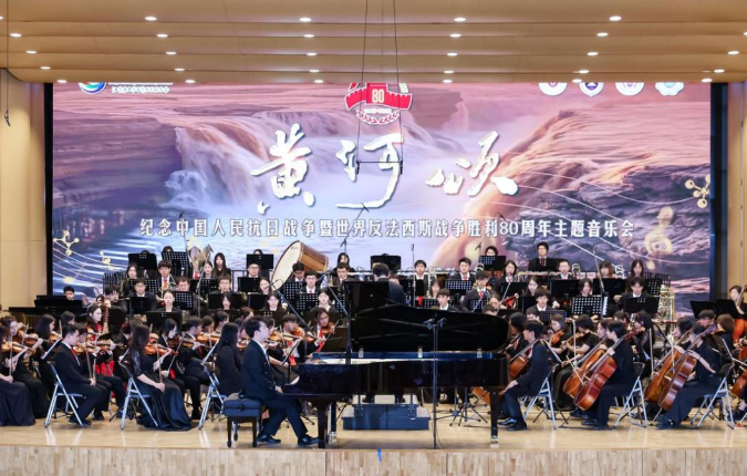 2025年5月18日,在江苏高校首场联合纪念抗战胜利80周年交响音乐会现场,由中国药科大学、南京大学、南京理工大学、河海大学四所高校大学生组成的江苏省大学生艺术团联合会器乐联盟交响乐团,现场演绎《红旗颂》《黄河大合唱》《黄河钢琴协奏曲》等多首反映抗战精神的经典爱国主义曲目。交响乐团以音乐为纽带,既为在场师生、文艺界人士及社会各界观众带来了一场震撼人心的音乐盛宴,更用琴弦与音符架起了连接历史与当下的桥梁。