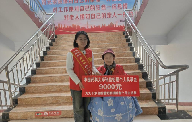 2024年1月,山西已经进入了深冬,寒风凛冽,国际医药商学院2021级本科生张佳怡在回到家乡的第二天清晨,便前往山西省侯马市为民老年公寓,看望她在志愿服务中结成的忘年交——90岁高龄的董秀凤奶奶。跟往常一样,张佳怡为行动不便的董奶奶打扫房间、打饭、梳头、整理床铺……她们互相询问着生活近况,一老一少,笑语盈盈,似乎消散了些冬日的寒意。