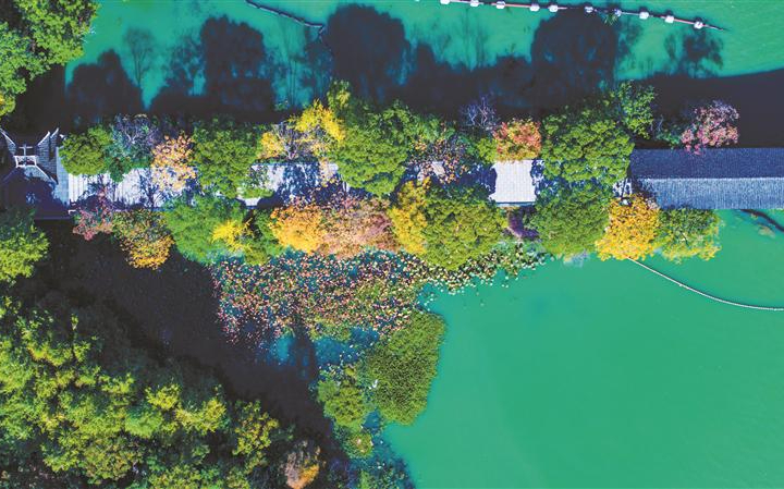 秋天的无锡,像打翻了的调色盘,五彩斑斓的秋景成为锡城市民追逐的热门打卡元素。图为长广溪湿地秋色。(宗晓东 摄)