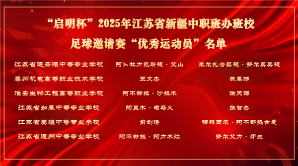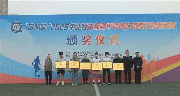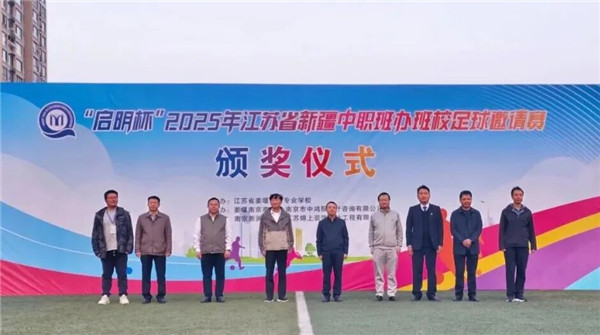 11月13日下午,2025年“启明杯”全省新疆中职班办班校足球邀请赛在江苏省姜堰中等专业学校圆满落幕。新疆驻江苏省工作组党委副书记、副组长王卫国,姜堰区副区长朱颖杰,江苏省通州中等专业学校党委书记姜汉荣,姜堰南京商会党支部书记彭启明,姜堰区委教育工委委员陈兵,江苏省姜堰中等专业学校党委书记、校长许夕根等领导及嘉宾出席活动,本次活动由副校长袁光亮主持。