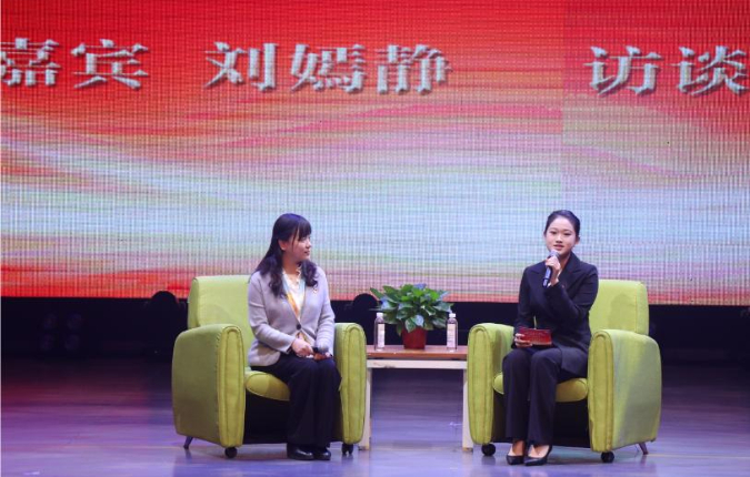 全国先进工作者、特殊教育领域的优秀代表刘嫣静在访谈中,结合自己数十年如一日守护特殊儿童成长的经历,深情阐释了“等待与陪伴”这一特殊教育的真谛。她以质朴而深刻的语言,勉励未来的教师们要永葆仁爱之心,锤炼专业能力,用足够的耐心和智慧去温暖、唤醒每一个独特的生命。学校教师孔文慧、赵苗成带来的双人宣讲《教育家精神引领下的青年成长答卷》,则紧密结合“四有”好老师标准,通过剖析学校师生中的真实案例,深入浅出地解读了教育家精神的时代内涵,为青年学子如何走好未来的从教之路提供了清晰的价值坐标和行动指引。