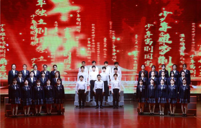 音乐思政剧《长大后我就成了你》通过精巧的跨时空对话设计,生动呈现了两代师范生对教育事业的接力传承,深情讴歌了“学高为师,身正为范”的崇高精神在三十年时光流转中的永恒魅力。话剧小品《老师好》则聚焦一位名为陈凯华的19岁乡村教师的真实感人事迹,细腻刻画了青年教师在艰苦环境中坚守梦想、用知识启迪童心、助力乡村振兴的动人故事,深刻诠释了教育在阻断贫困代际传递、促进社会公平中的关键作用。配乐朗诵《美好教育照亮未来》将源远流长的姑苏文脉与新时代教育初心相联结,在激昂澎湃的声韵中,抒发了对以教育之力照亮国家未来、助推民族复兴的坚定信念与炽热情怀。活动在高亢嘹亮的合唱《少年中国说》中达到高潮,学子们用青春的歌声,唱响了“少年强则国强”的时代强音,表达了“请党放心,强国有我”的豪迈壮志。