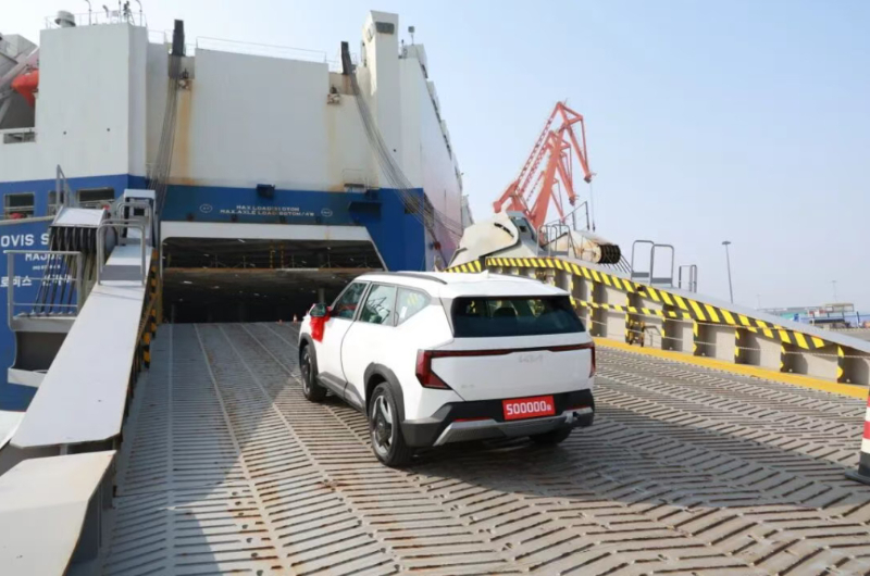 上午10时28分,随着悦达起亚的2000辆汽车有序驶入滚装轮“格罗阳光”号,公司出口汽车正式突破50万辆大关。此次出口的汽车涵盖索奈、赛图斯、狮铂拓界、EV5等多款燃油及新能源车型,将随船发往韩国釜山港,后销往世界各地。