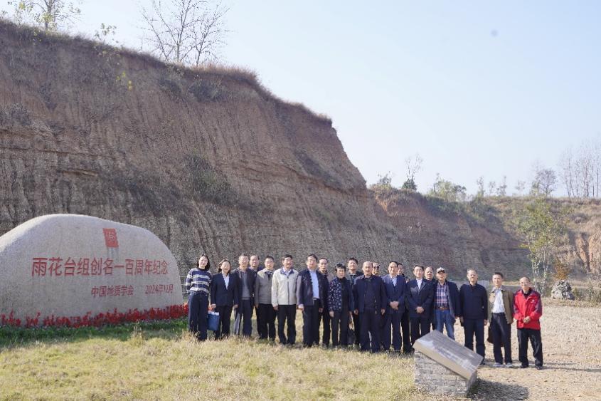 与会者在“雨花台组砾石层遗址”前留影