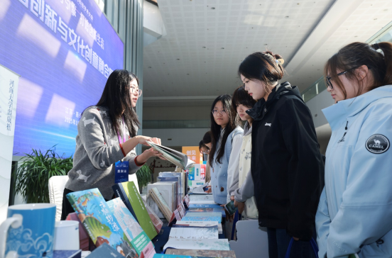 活动现场,科普创新与文化创意展率先拉开序幕,成为报告会的亮眼前奏。来自江南大学、东南大学出版社、河海大学出版社、江苏凤凰科技出版社、江苏凤凰教育出版社、译林出版社、江苏省淡水水产研究所、江苏省气象学会、得塔云智能科技、炫佳科技等十余家单位,携数字非遗衍生品、智能科普互动装置等特色展品参展。这些展品直观生动地展现了科文融合的前沿实践成果,极具创意的呈现形式吸引了众多参会者驻足观赏、互动体验,让与会者近距离感受科技与文化碰撞迸发的创新魅力。