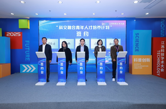 为系统性培育科文融合复合型人才,活动现场还举行了重要合作启动仪式。南京艺术学院、江苏省重点高端智库紫金文创研究院、江苏省艺术与科学中心、河海大学出版社、扬州大学文学院、江苏旅游职业学院六家单位携手成立“科文融合青年人才培养计划”导师团,正式发布跨校协同的人才培育体系与实践路径,为科文融合领域青年人才的成长搭建起高质量平台。