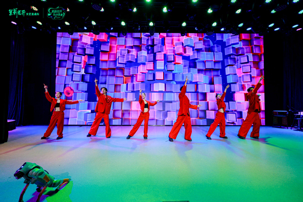 越剧《梁祝·十八相送》唱腔婉转优雅,京剧武戏《白水滩》动作潇洒,杂技《梦蝶·对手技巧》展现力量和柔美,古彩戏法《满堂彩》以口彩相连的惊喜互动带来奇妙体验。憨态可掬的机器狗轻快登场,与青年舞者同台献上一场活力四射的创意舞蹈《青春律动》。