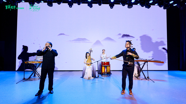 南京市歌舞剧院原创舞蹈《茉莉花开》拉开整场演出序幕。建邺区文化馆奏响弦乐四重奏《四季》;古龠非遗传承人于东波领衔南京民族乐团“文都乐社”奏响《沧海一声笑》,熟悉的旋律掀起一波“回忆热潮”。