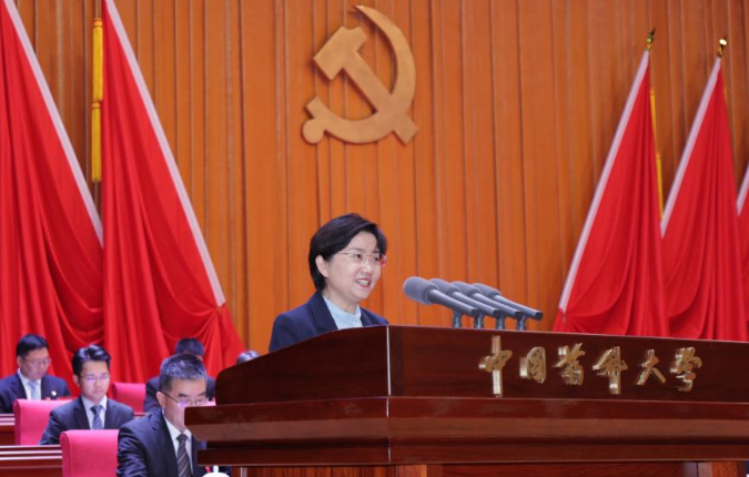 陈艳代表江苏省委教育工委、省教育厅向大会的召开表示热烈祝贺,向教育部长期以来对江苏教育事业的关怀和支持表示衷心感谢,向全体与会代表、中国药科大学全体党员和师生员工致以诚挚问候。她指出,近年来,中国药科大学党委全面贯彻党的教育方针,落实立德树人根本任务,带领全校基层党组织和广大师生党员围绕第十次党代会确定的目标任务,全方位整合创新资源,扎实推进教育科技人才一体发展,药学特色世界一流大学建设进程不断加速,学校综合实力核心竞争力显著提升,为江苏生物医药产业发展和服务国家重大战略作出了重要贡献。省委教育工委、省教育厅将切实履行属地责任,积极配合教育部党组,一如既往关心、支持学校的建设和发展。希望学校新一届党委进一步提高政治站位,切实加强党对学校工作的全面领导;更加注重内涵建设,全力推动学校事业高质量发展;更加注重高效治理,更好统筹高质量发展和高水平安全。以第十一次党代会召开为契机,持续增强学校各级党组织的政治领导力、思想引领力、群众组织力、社会号召力,进一步统一全校干部师生的思想,团结一心、砥砺奋进,凝聚推动学校事业新发展、新跨越的磅礴力量。
