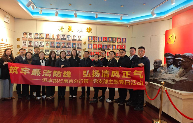 为引导党员干部增强廉洁自律意识,近日,恒丰银行南京分行第一党支部组织全体党员前往南京市廉政教育基地——鼓楼区颐和路社区将军馆,开展“筑牢廉洁防线 弘扬清风正气”主题党日活动,以传承老一辈革命家艰苦奋斗作风推动廉洁文化入脑入心,为高质量发展注入“廉动力”。
