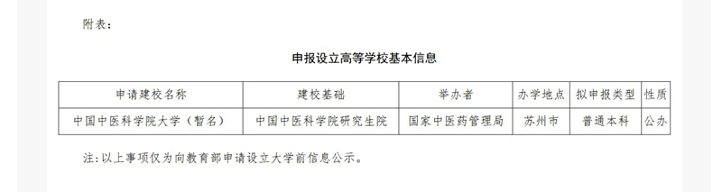 11月20日,国家中医药管理局发布《关于高等学校设置事项的公示》:根据《中华人民共和国高等教育法》《普通本科学校设置暂行规定》等有关法律法规,经组织专家指导、考察、评议,拟按程序向教育部申报设立中国中医科学院大学(暂名),现予以公示。公示时间为2025年11月20日至11月26日。