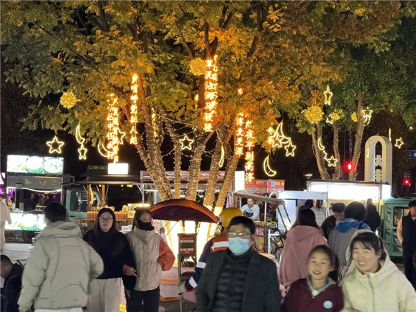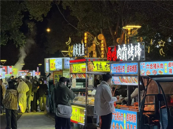 “这里以前是闲置空间,既不占用消防通道,又能借助商圈人流和交通优势,兼顾摊主收益与居民生活。”高淳区城管局相关负责人介绍,目前夜市设置120多个摊位,优先吸纳原先占道经营的摊贩入驻。