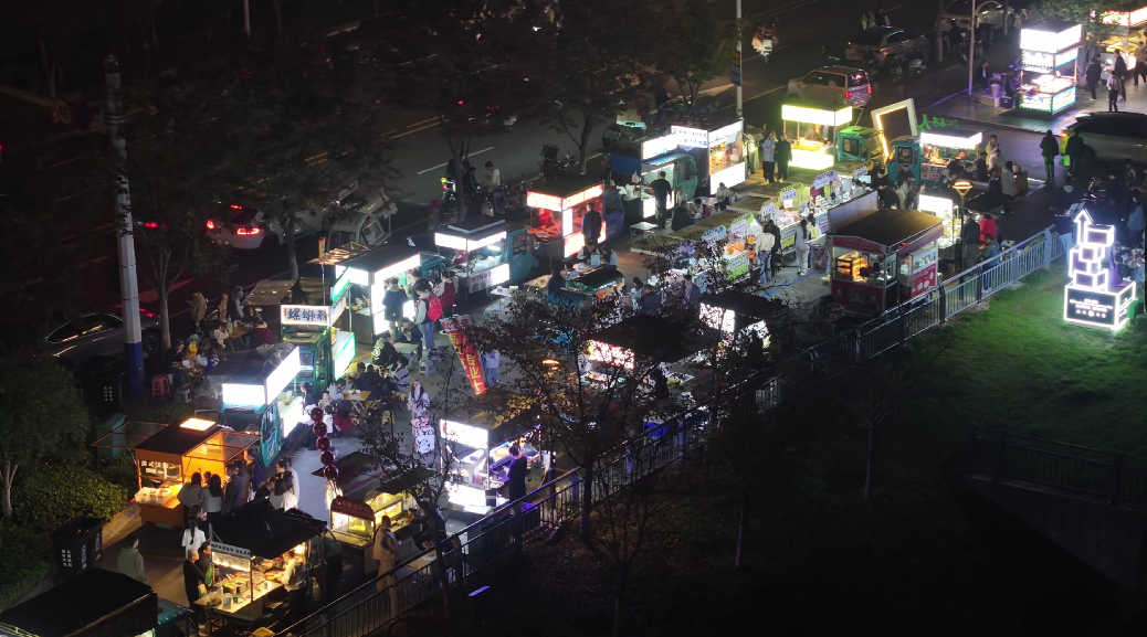 破解难题的关键在于给流动摊贩找个“安稳家”。高淳区城管部门联合淳溪街道,深入摸排城区闲置空间,最终选定毗邻宝龙商圈、靠近S9地铁高淳站的大丰河绿道非核心区域,打造规范化夜市疏导点。目前夜市设置120多个摊位,优先吸纳原先占道经营的摊贩入驻,每日客流量达数千人。