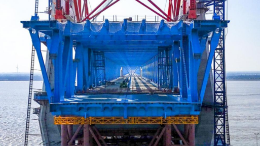 11月20日,随着3号墩E28E29节段钢梁顺利吊装就位,由中铁大桥局承建的北沿江高铁崇启公铁长江大桥主通航孔桥南边跨钢梁吊装全部完成。