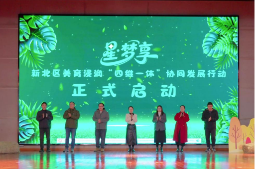 活动现场,“星·梦享”——新北区美育浸润“四维一体”协同发展行动正式启动,标志着区域美育工作迈入联动发展、深度融合的新阶段。该行动由新北区奔牛实验小学领衔,联合飞龙实验小学、龙虎塘第二实验小学、九里小学、万绥小学、奔牛初级中学及常州市中天实验学校共同参与,将持续以美育为纽带,助力青少年全面发展。