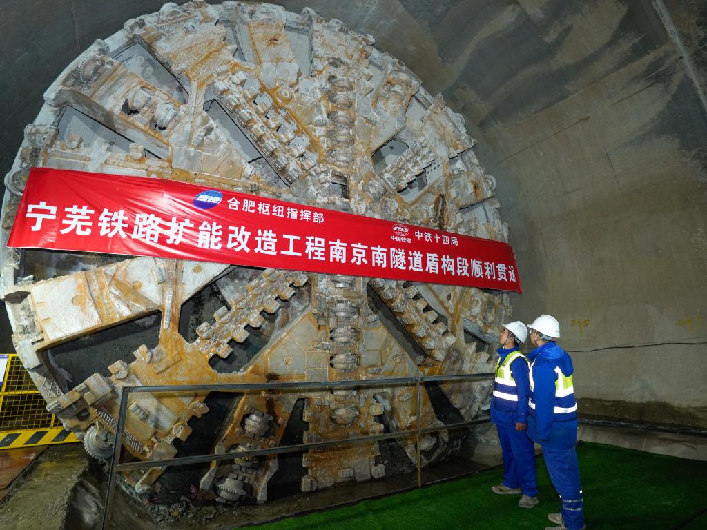 11月21日,随着“宁芜号”土压平衡盾构机刀盘破洞而出,由中铁十四局承建的宁芜铁路扩能改造工程南京南隧道盾构段顺利贯通。作为宁芜铁路扩能改造的控制性工程,南京南隧道全长14.442公里。