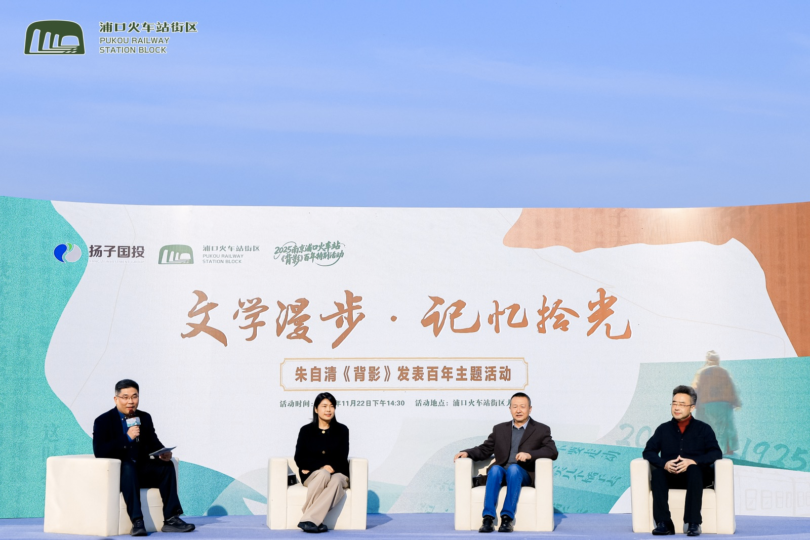当天下午,“文学漫步·记忆拾光”漫谈会在浦口火车站街区举行。当代作家、中国作协全国委员会委员、江苏省作家协会副主席鲁敏,江苏省作家协会副主席、江苏省文艺评论家协会名誉主席汪政,著名儿童文学作家、江苏省作家协会副主席、南京市作家协会副主席祁智,南京师范大学文学院副教授、硕士生导师、江苏省鲁迅研究会秘书长刘彬等专家学者以“文学里的烟火记忆”为主题,围绕《背影》的文学创作展开对话,与读者朋友分享自己的独到理解。近代史知名学者、人民日报社《国家人文历史》新媒体中心副主任纪彭带来《背影承光,百年序章》的主题分享,带领读者在历史叙事中触碰人文温度。现场还邀请观众参与互动问答及“时间胶囊”投递活动,温柔地与城市交换心意。