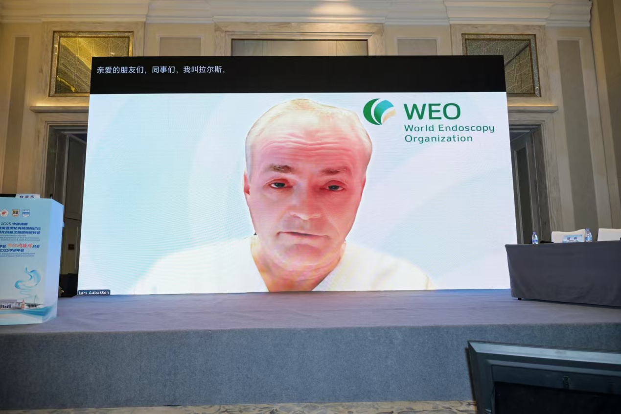 世界内镜组织(WEO)现任主席Lars Aabakken教授代表WEO通过视频向大会的成功召开表示祝贺,并向全体与会同仁致以诚挚问候与崇高敬意。Lars Aabakken教授表示,中国消化内镜事业取得长足进步,WEO很荣幸地见证并参与了这一发展历程。中国专家学者积极参与WEO的全球学术交流与标准制定,为世界消化医学贡献了中国智慧与中国方案。