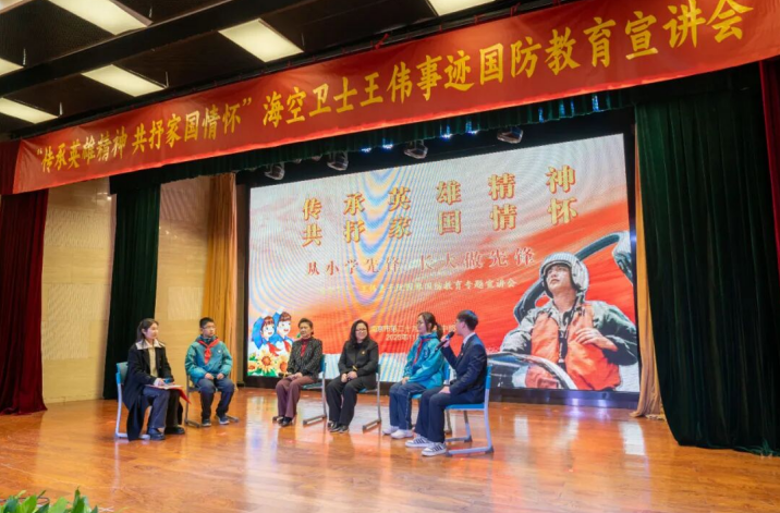 阮国琴宣讲的题目是《从小学先锋 长大做先锋》,她以深情的语调,缓缓讲述着王伟烈士的英雄事迹。从王伟年少时对飞行的热爱,到投身海军事业后的坚守与担当;从日常生活中的刻苦钻研,到关键时刻为捍卫国家主权挺身而出的无畏……现场寂静无声,大家都屏息聆听。随着阮国琴的讲述,王伟烈士的英雄形象愈发清晰,他用生命诠释的爱国奉献、忠诚担当精神,深深烙印在每一位在场人员的心中。