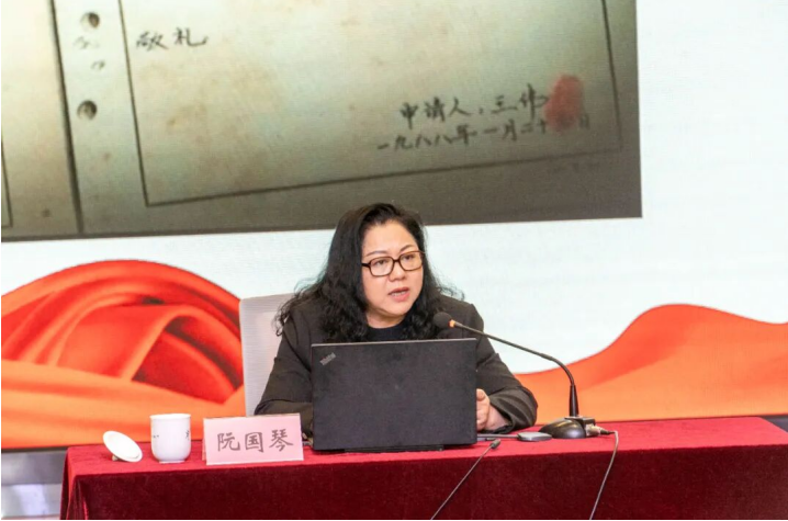 郭庆红首先上台宣讲。带着对父亲的深切思念,她讲述了八路军老战士郭卫川孤身徒步三十里,勇闯敌营,智夺战马的故事。老一辈革命者用热血和汗水铸就和平与安宁的故事,让在场所有人深热血沸腾。郭庆红鼓励在场的学生:要珍惜时光,好好学习,掌握扎实的知识,为人民服务!
