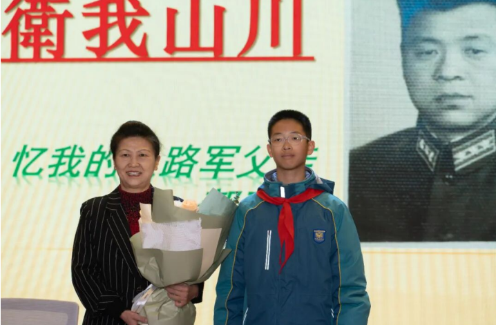 宣讲结束后,学生代表向郭庆红献上鲜花,以最诚挚的敬意,感谢她带来的珍贵分享,也向老一辈英雄致敬。